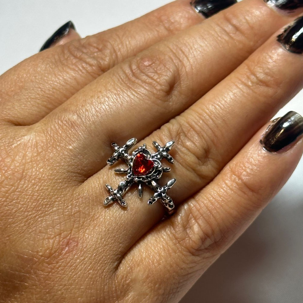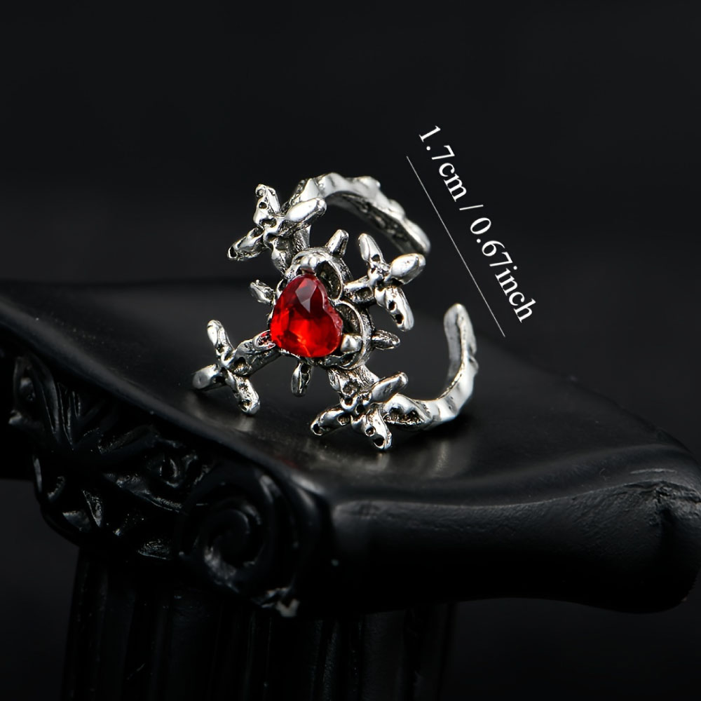 El Anillo Cruz Vampiro Gótico Ajustable de Aralis es una pieza de estilo vintage con detalles llamativos que combinan el encanto oscuro del diseño gótico con un toque elegante y moderno. Su estructura en aleación de zinc ofrece resistencia, mientras que la piedra en forma de corazón rojo añade un contraste vibrante y distintivo. Un accesorio unisex, cómodo y ajustable, ideal para looks alternativos, temáticos y de temporada.