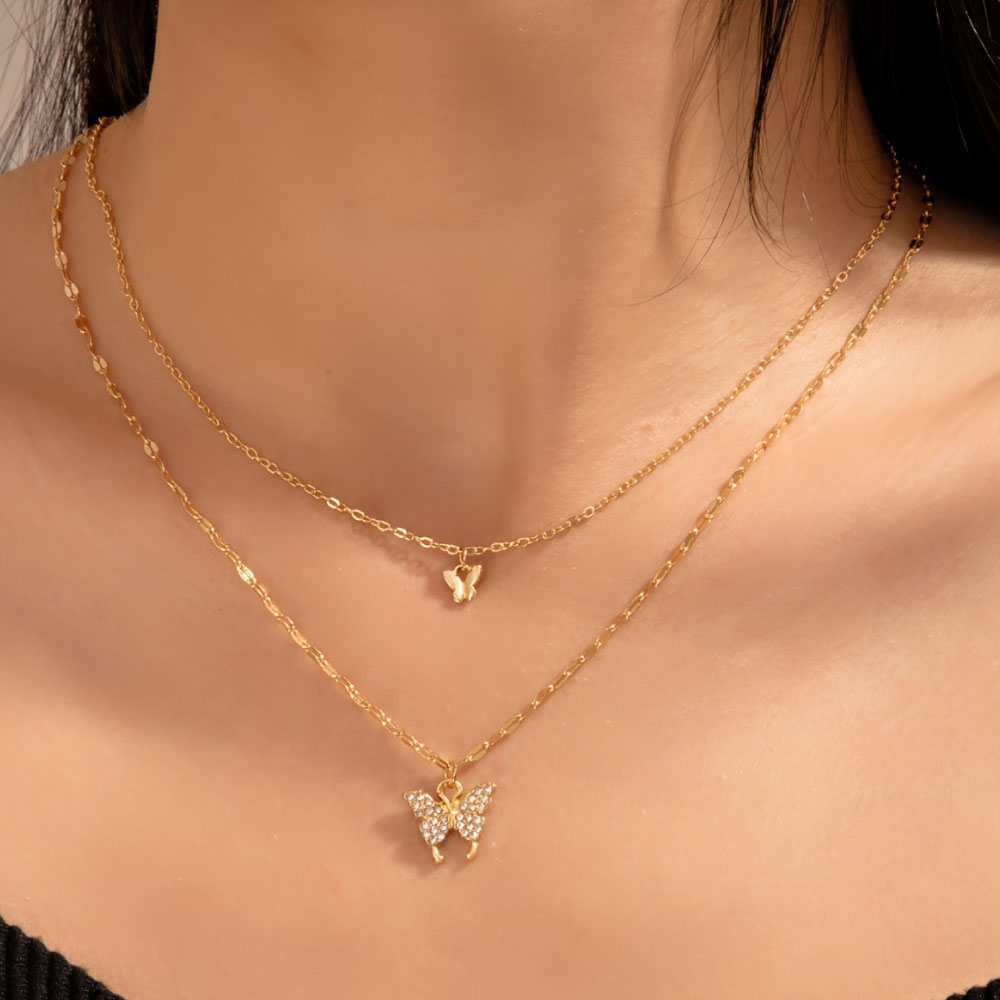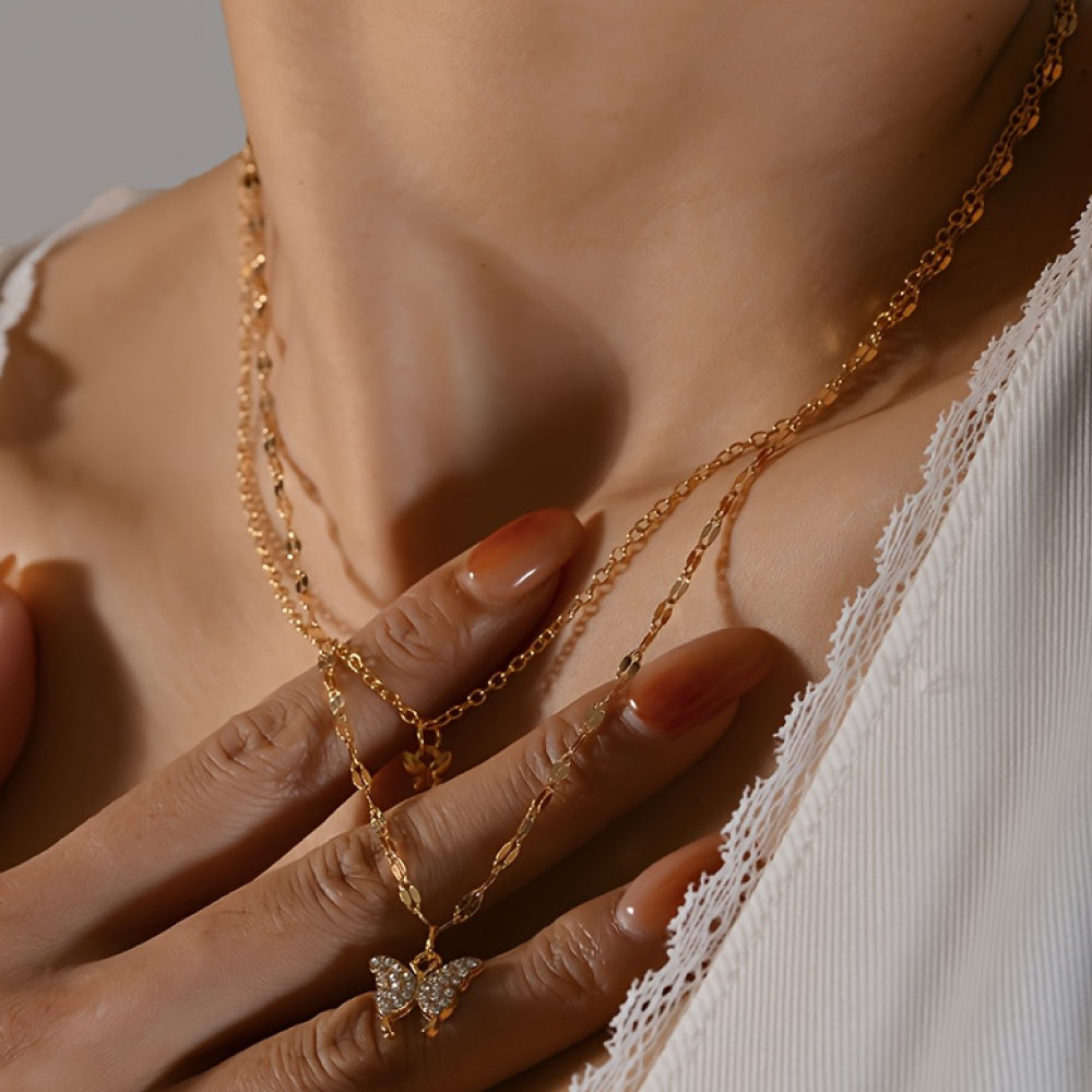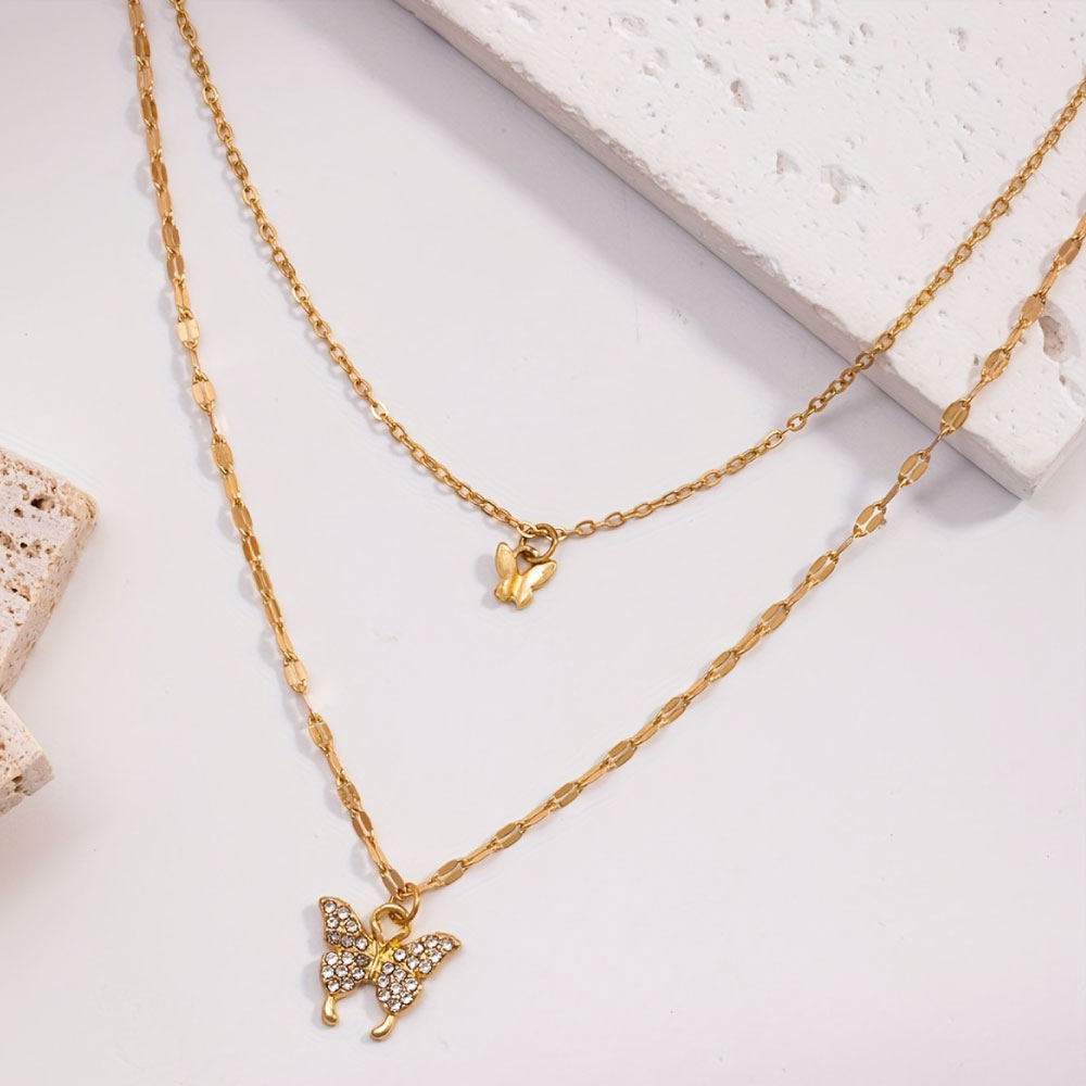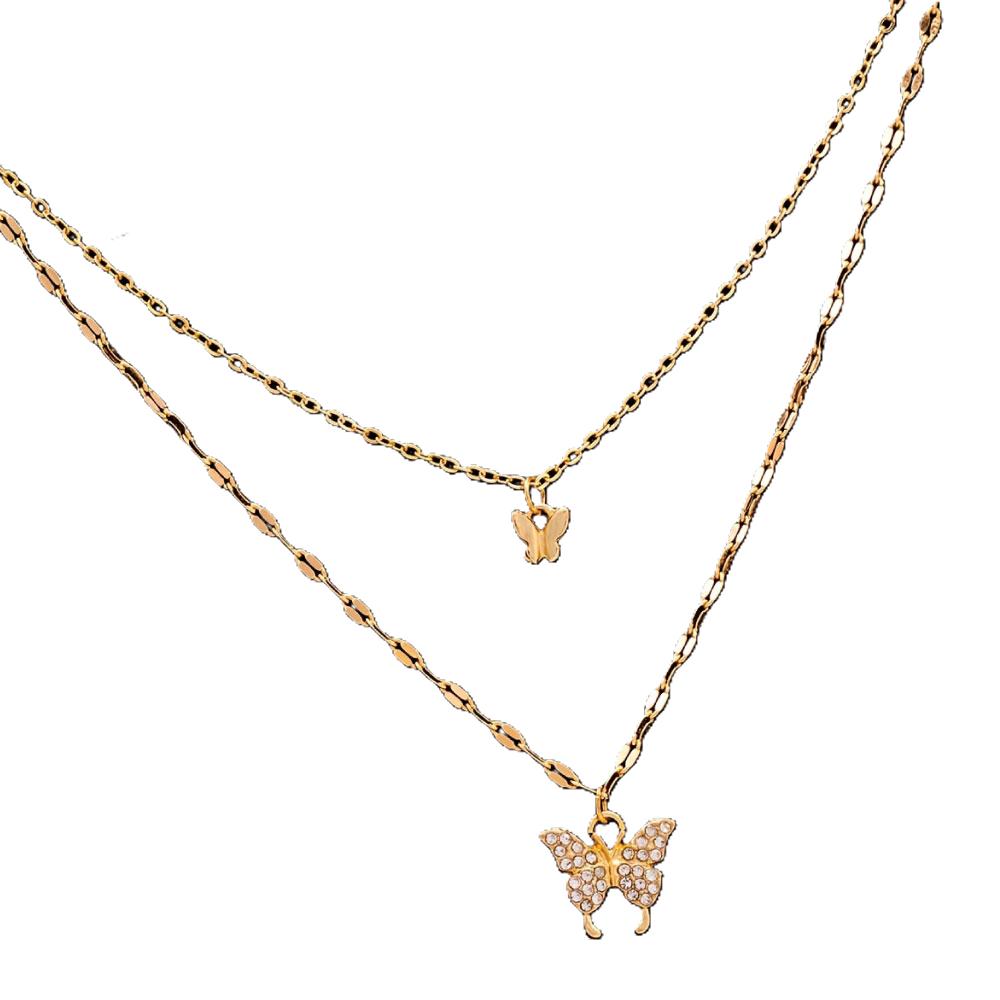 Collar doble capa dorado ARALIS con colgante de mariposa. Un accesorio elegante y versátil, ideal para uso diario, fiestas y ocasiones especiales.
