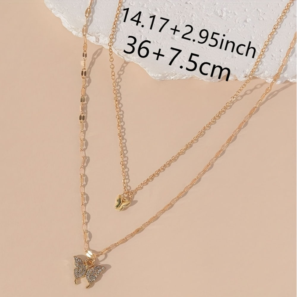 Pieza de joyería diseñada para mujeres que buscan sofisticación y estilo en cada detalle. Su diseño de doble capa con un delicado colgante de mariposa aporta un aire romántico y moderno, convirtiéndolo en el complemento perfecto para cualquier atuendo. Con acabado dorado y detalles en circonita, este collar refleja lujo y elegancia, ideal para destacar en reuniones, fiestas o en el día a día.