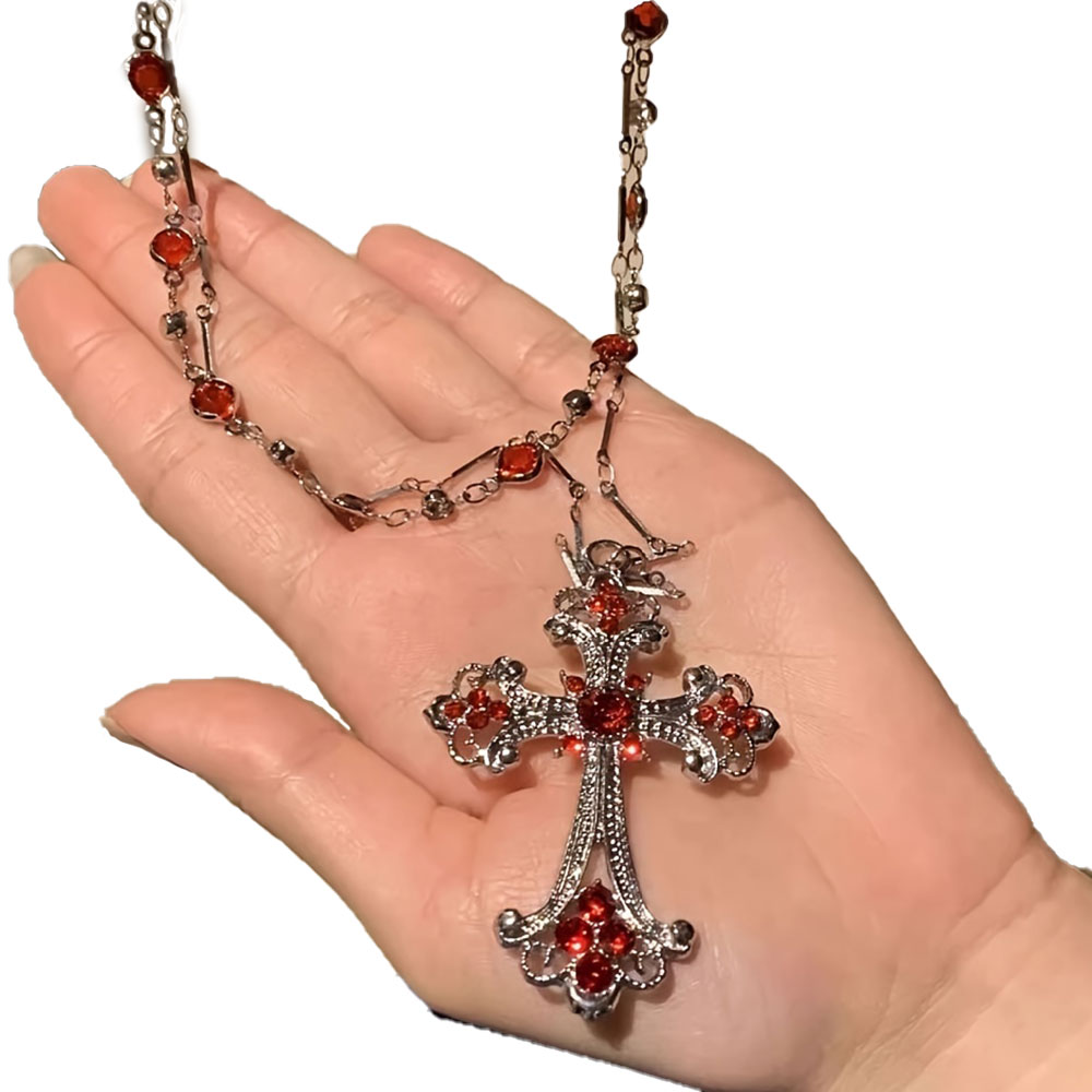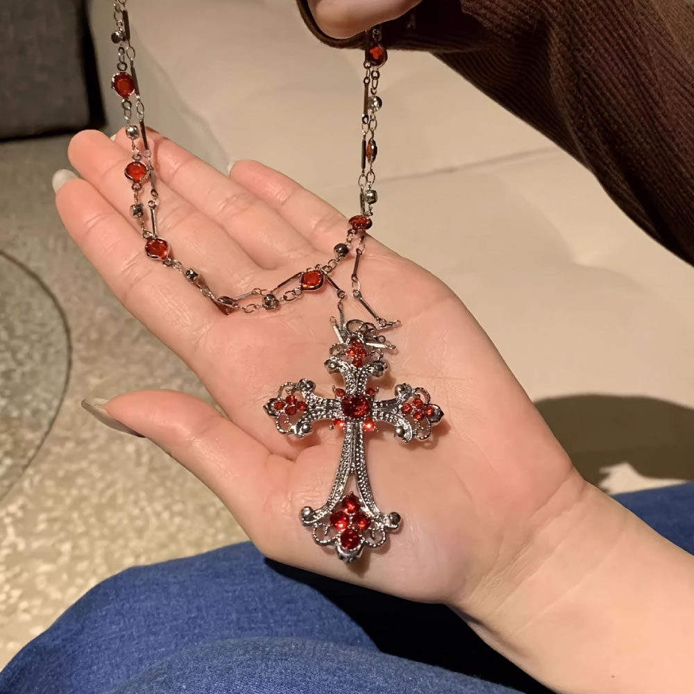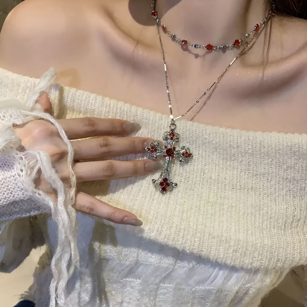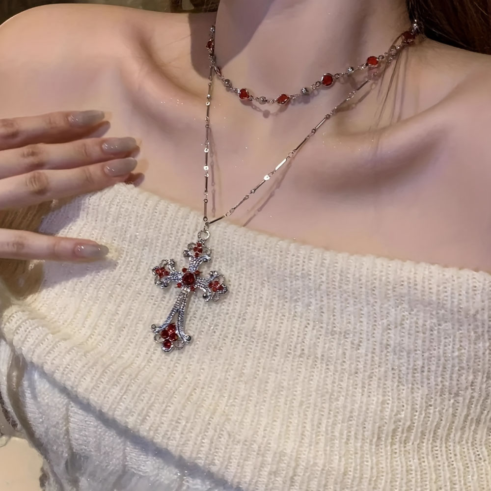 Doble collar gótico con cruz, un símbolo de estilo audaz en plata y rojo. Combina la esencia retro con una actitud moderna para crear looks únicos y llenos de carácter. La pieza definitiva para destacar tu moda femenina alternativa.