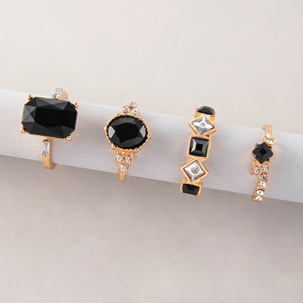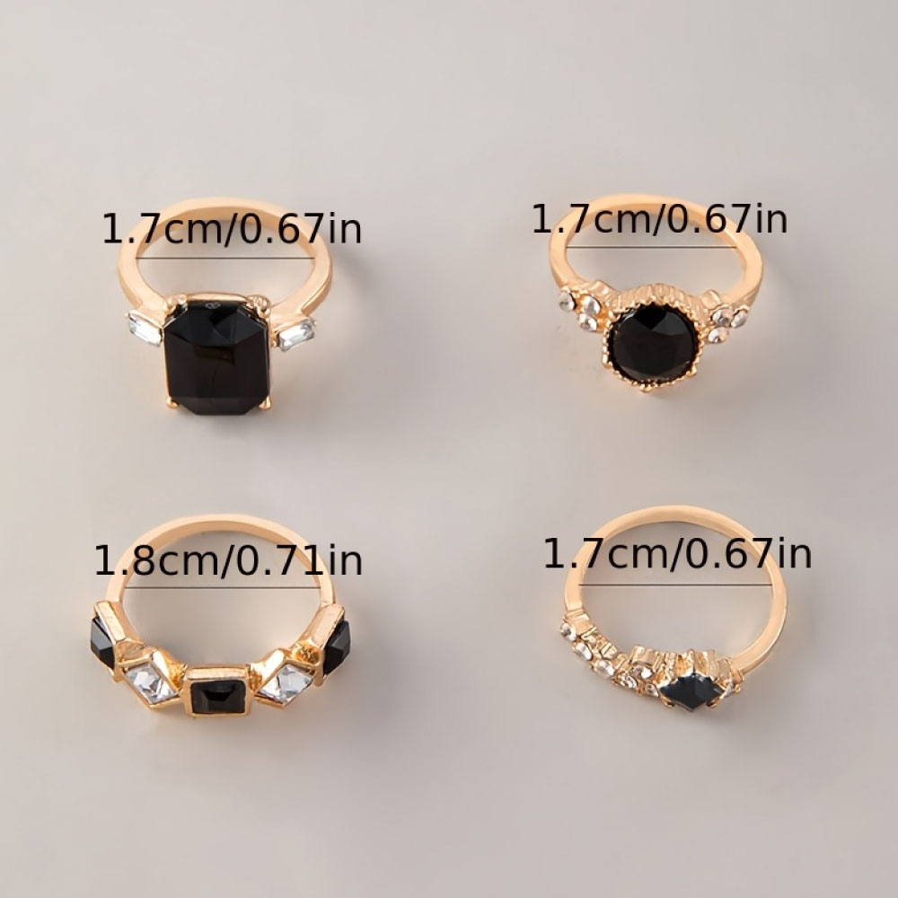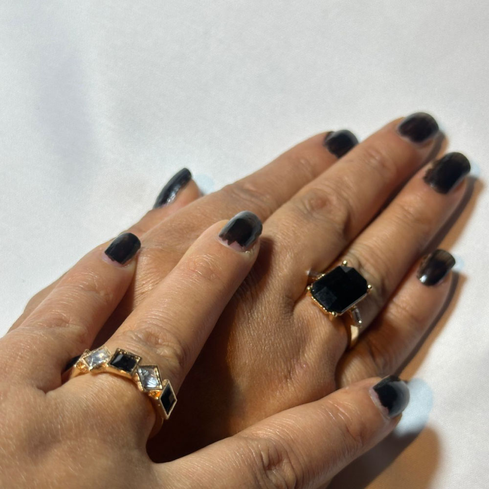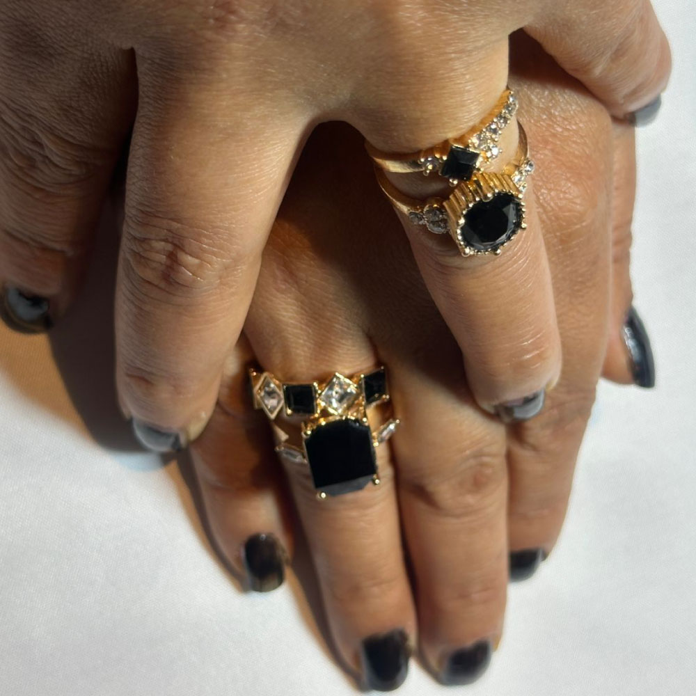El Set de 4 Anillos Elegantes de Aralis combina diseño moderno, brillo y versatilidad en un solo conjunto. Fabricados en aleación de zinc, estos anillos presentan acabados dorados con detalles en negro y adornos de strass que añaden un toque sofisticado. Sus formas geométricas permiten crear combinaciones únicas, ideales para elevar cualquier look, desde estilismos casuales hasta outfits de fiestas y eventos especiales.