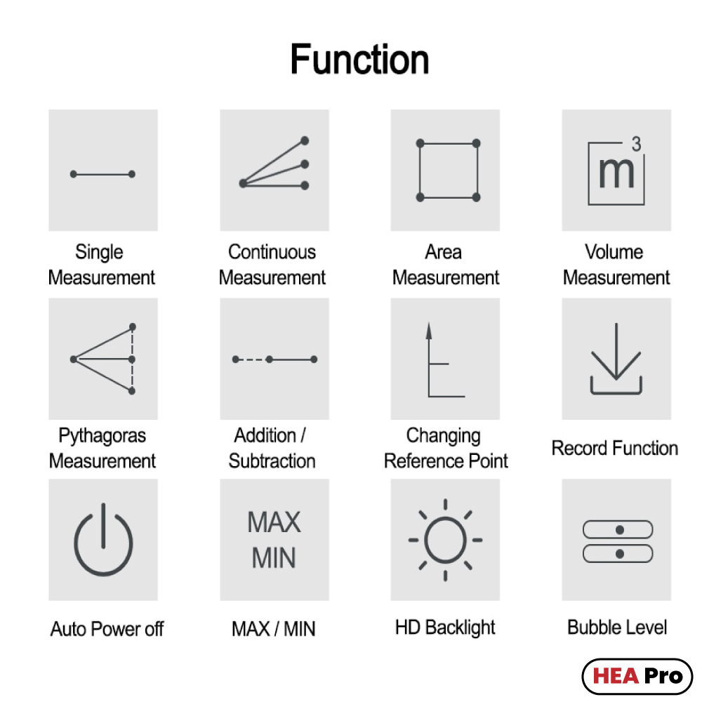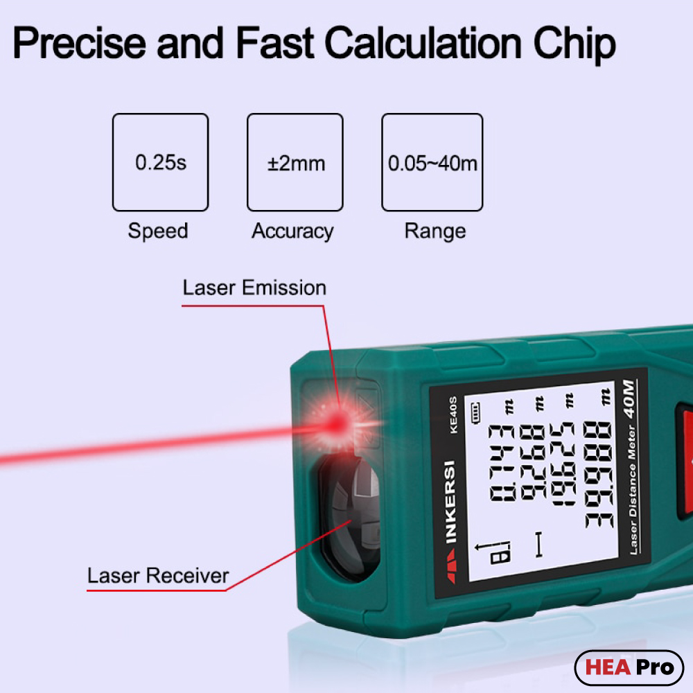 - Láser rojo de alta precisión: Con una precisión de ±2 mm, es ideal para mediciones exactas en distancias cortas y largas.